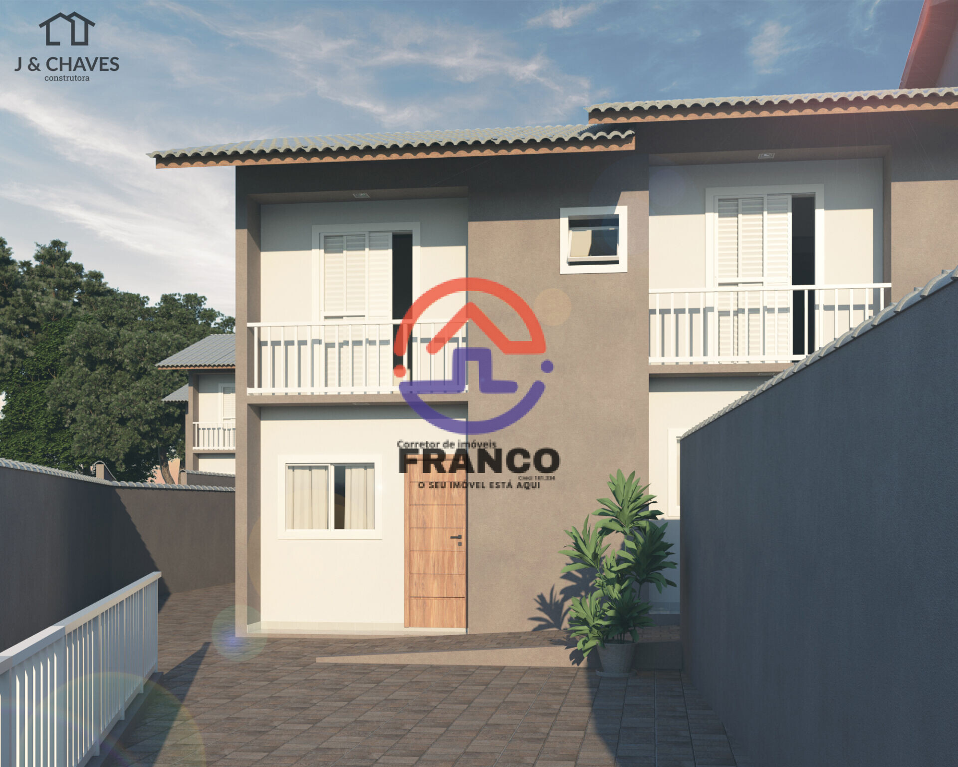 Condomínio Residencial Caramuru, Sobrados de 64m² de área construída com 2 suítes (1 com varanda), sala, banheiro, lavabo, cozinha, quintal, 1 vaga.
